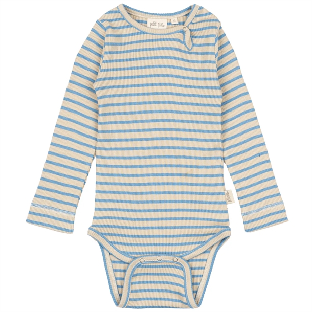 Fairhandel fandt petit piao body striber allure blue dark off white hos babyriget.